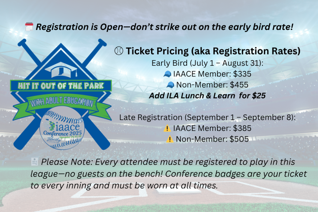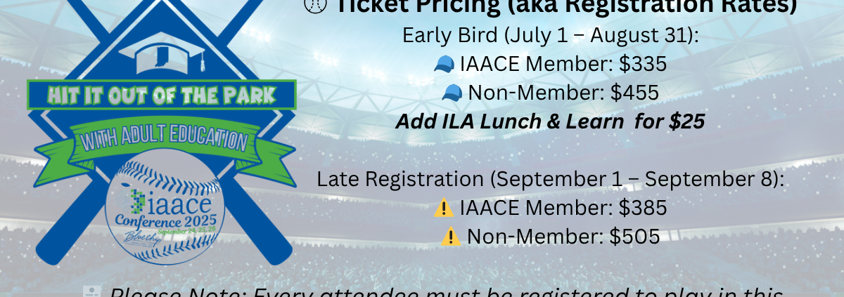 We know these are uncertain times. With the delay in federal adult education funding, we understand that many of our members are facing tough decisions and budget constraints. That’s why the IAACE Board of Directors has taken action to help.