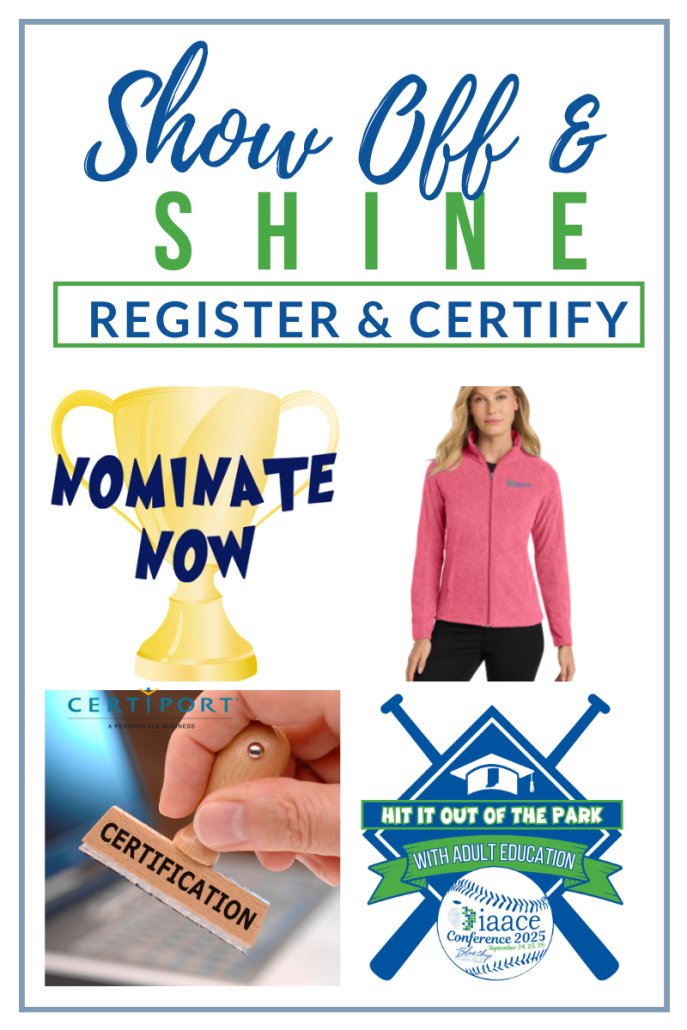 This is your chance to spotlight the superstars of adult education—students, colleagues, and programs that go above and beyond. Recognition isn’t just a pat on the back—it’s fuel for motivation and momentum. Submit your nominations by Friday, August 15, so we can celebrate their achievements at the conference. Click here for details.