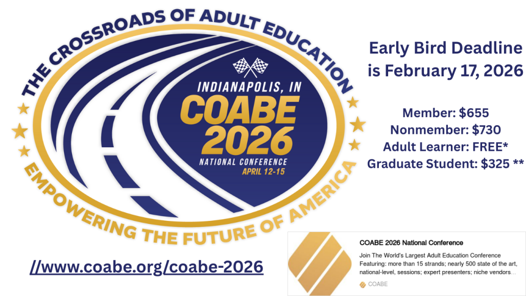 Go ahead and get it on your calendar. Registering by February 17 helps with planning and ensures Indiana shows up strong and saves you $50. With COABE happening in Indy, this is one of the easiest opportunities to attend, learn, and connect without the travel stress.
